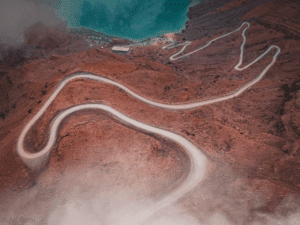 ومن خلال هذا الطريق الجبلي المتعرج شديد الانحدار، الذي يتجه من ولاية خصب إلى الجنوب الشرقي لمسافة حوالي 30 كيلومتراً قبل أن يهبط إلى الخور، يطل الزائر على منظر بانورامي من ارتفاع يبلغ 420 متراً يتمازج فيه البحر والجبل بـ"منظر مهيب"، حسبما ذكر بموقع وزارة السياحة العمانية.