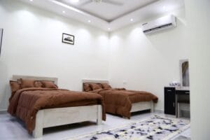 ١- غرف للنوم مع دورات المياه خاصه مع كامل مرفقاتها.