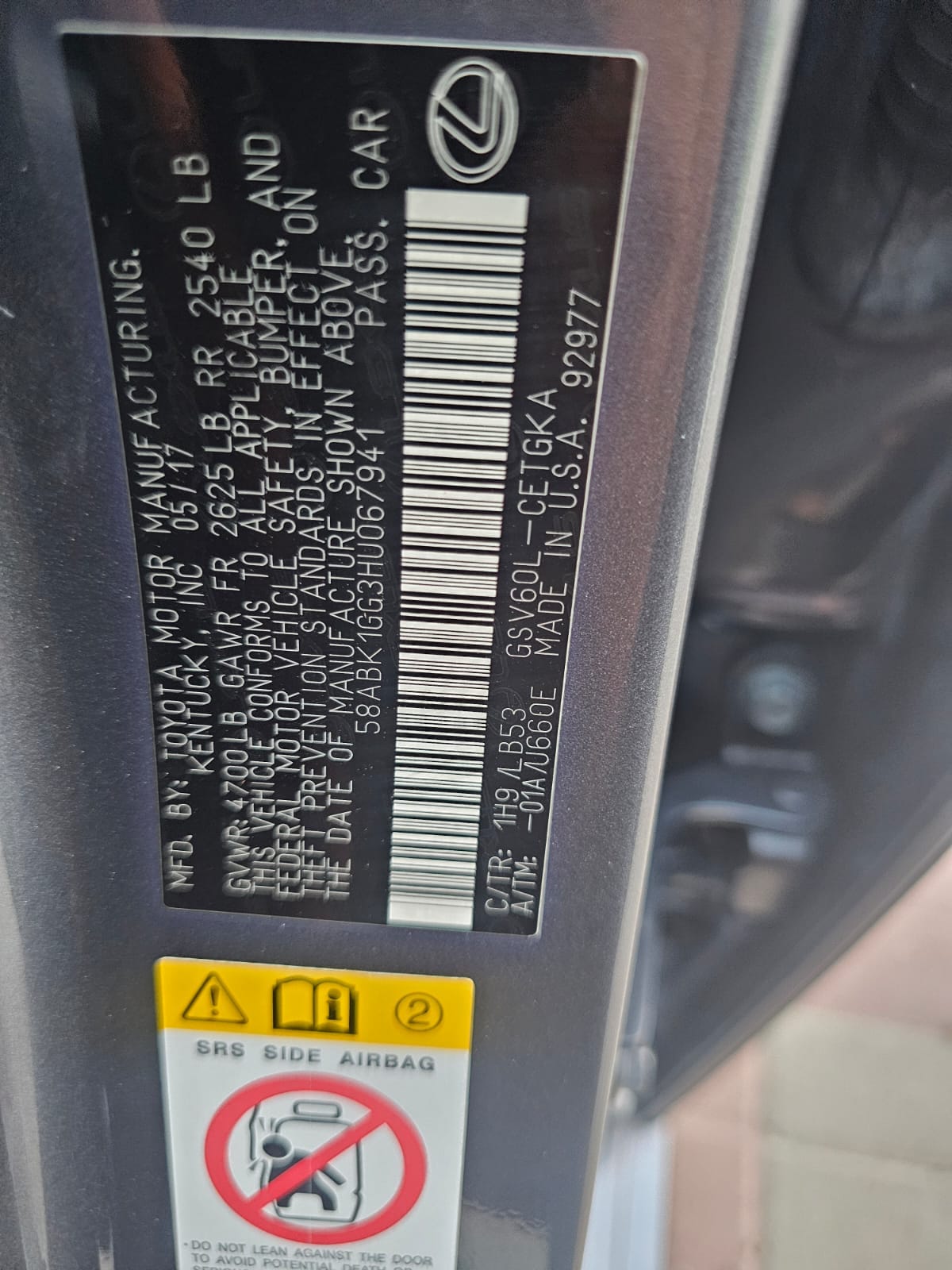 اسم المركبة : لكزس ES 2017 الفول اوبشن بانوراما نظيف جدا