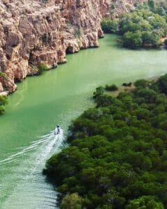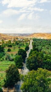 وتنفرد القرية التي تبعد عن مركز الولاية حوالي (30) كيلومترا بتضاريسها الجبلية الشاهقة التي تتخللها المياه الجارية وسط الجبال العالية، وتشكل على جانبيها المساحات الخضراء التي تسحر الأنظار في انسجام طبيعي تناسقت معه الأصالة التاريخية العريقة التي بقيت آثارها خالدة بين البيوت الأثرية والأبراج والحصون.